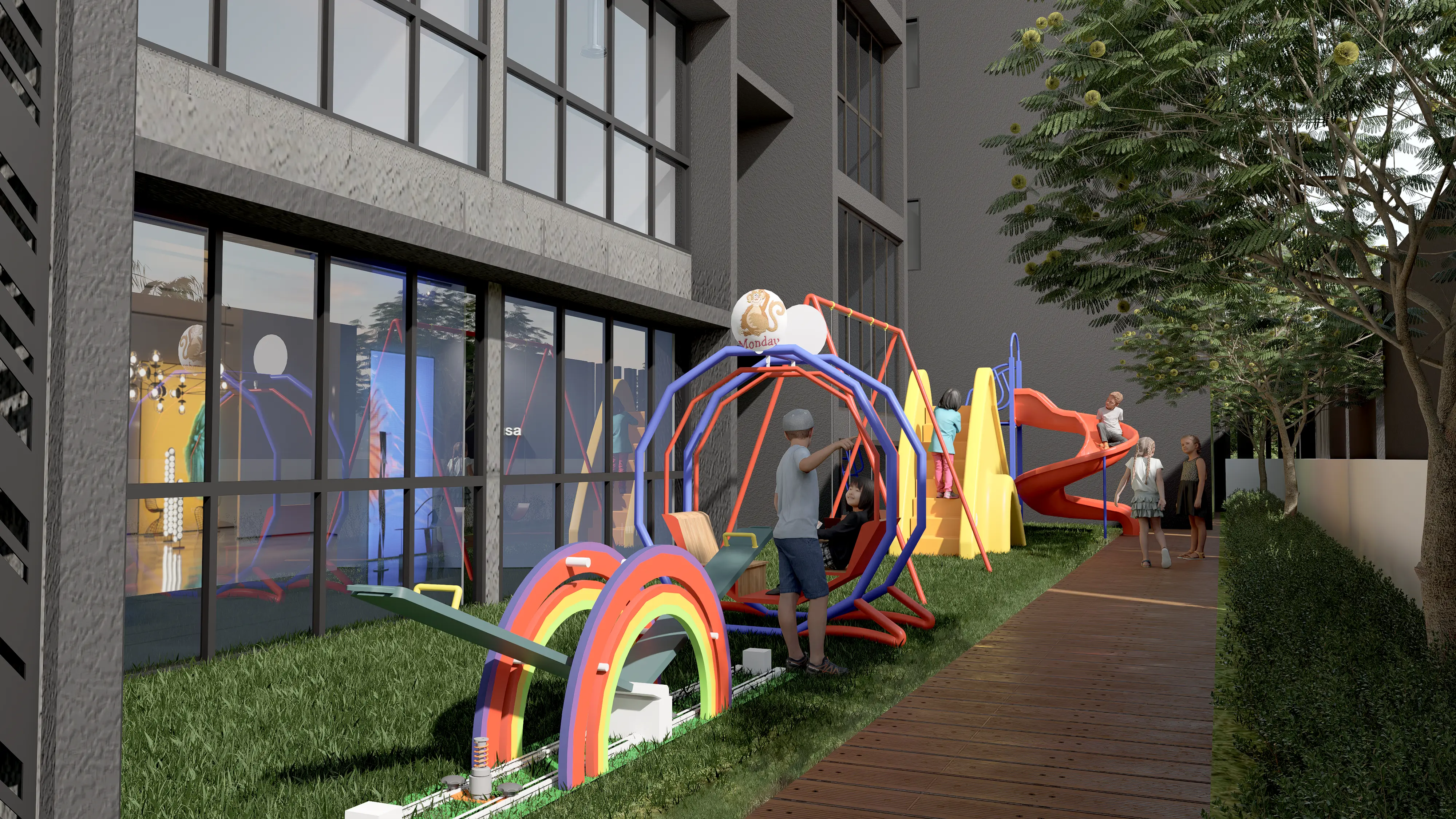 Safe and vibrant zone designed for active play and recreation.
